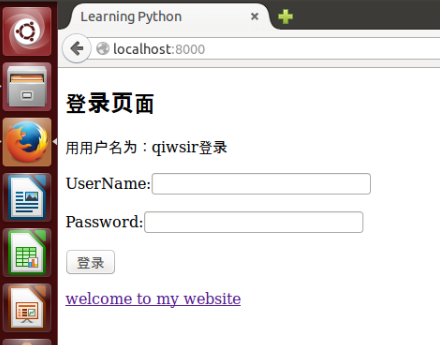 <p>用用户名为:{{user}}登录</p>,这里用了{{ }}方式,接受对应的变量引导来的对象。也就是在首页打开之后,用户应当看到有一行提示。如下图一样。